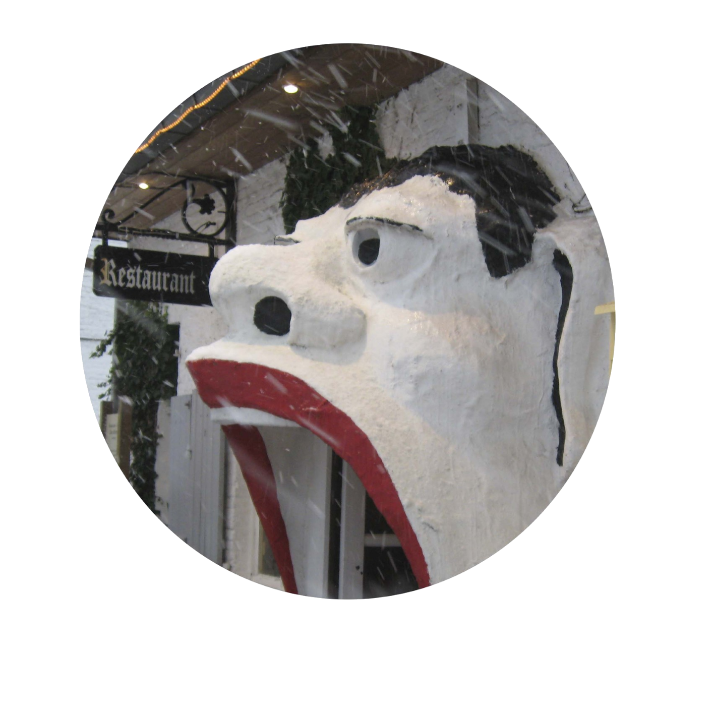De Inwoners van Geluwe worden 'gapers' genoemd. Met de eerste straatfeesten namelijk Gapersfeesten in 1972 plaatste de beeldhouwer een sculptuur voor de deur. Vandaar de unieke ingang van Den Artiest. |
